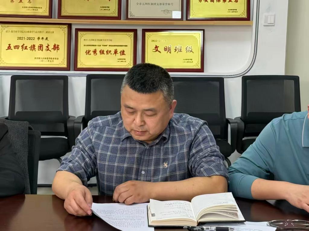 为深入学习贯彻党的二十届四中全会精神,巩固学习教育成果,落实推进党的自我革命“五个进一步到位”的要求,3月25日下午,数学科学学院教工党支部按照学校党委组织部要求,组织召开2025年度组织生活会。此次会议的主题是深入学习贯彻习近平新时代中国特色社会主义思想,全面贯彻落实党的二十届四中全会精神,以打好攻坚战、持久战的决心和恒心,锲而不舍落实中央八项规定精神,推进作风建设常态化长效化,以优良作风凝心聚力、真抓实干,奋力开创中国式现代化建设新局面,旨在通过查摆问题、开展批评与自我批评,为实现“十五五”良好开局打牢思想基础。会议由学院教工党支部书记金天坤同志主持,党支部全体党员参加。学校党委组织部委派化学工程学院党总支副书记李铮及组织员吴薇薇两名同志作为督导组成员旁听会议。