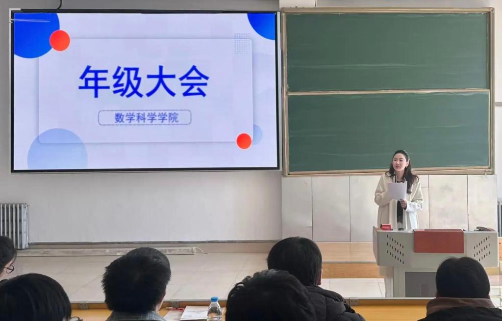 为进一步规范学生日常行为、强化校园安全管理,数学科学学院于4月7日在学院113教室召开2023级年级大会。旨在严明校规校纪、排查安全隐患,营造安全文明的校园环境。2023级辅导员夏丽娜主持,2023级全体学生参会。