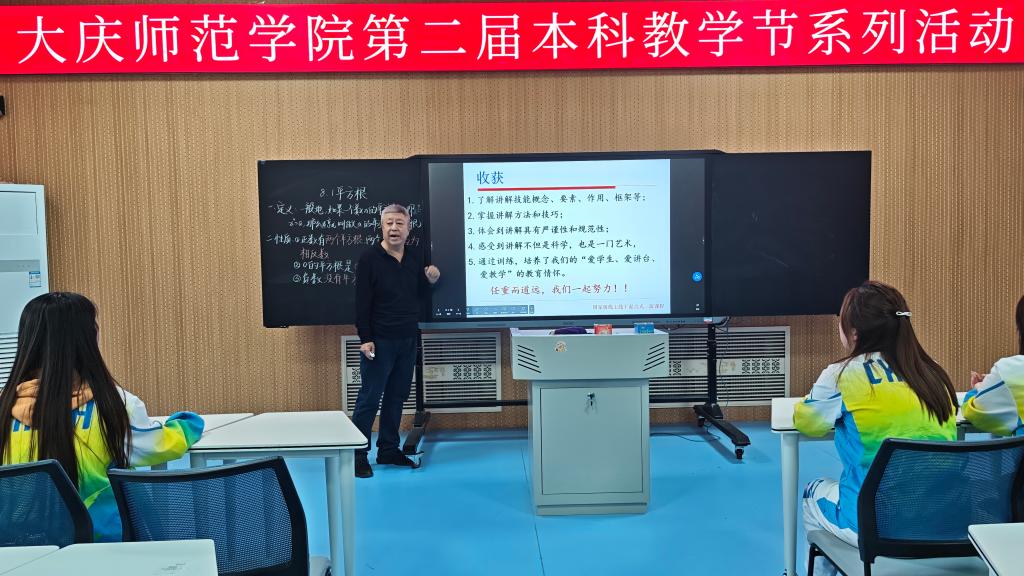 李唐海教授以《数学微格教学》课程中的“讲解技能训练”为授课内容,打破传统教学模式,全面践行翻转课堂教学理念。课堂上聚焦学生实践能力培养,安排学生依次进行对顶角、有理数的加法10分钟教学片段展示,并通过师生精准点评、小组生生互评、全员共同评议的多元互动形式,打造沉浸式教学课堂。运用荣获省级教学改革成果奖的十步循环法开展教学,实现线上线下深度联动、师生生生高效互动,始终坚持以学生发展为中心,切实强化学生教学实践技能训练,彰显了数学师范专业教学的创新性与实用性。