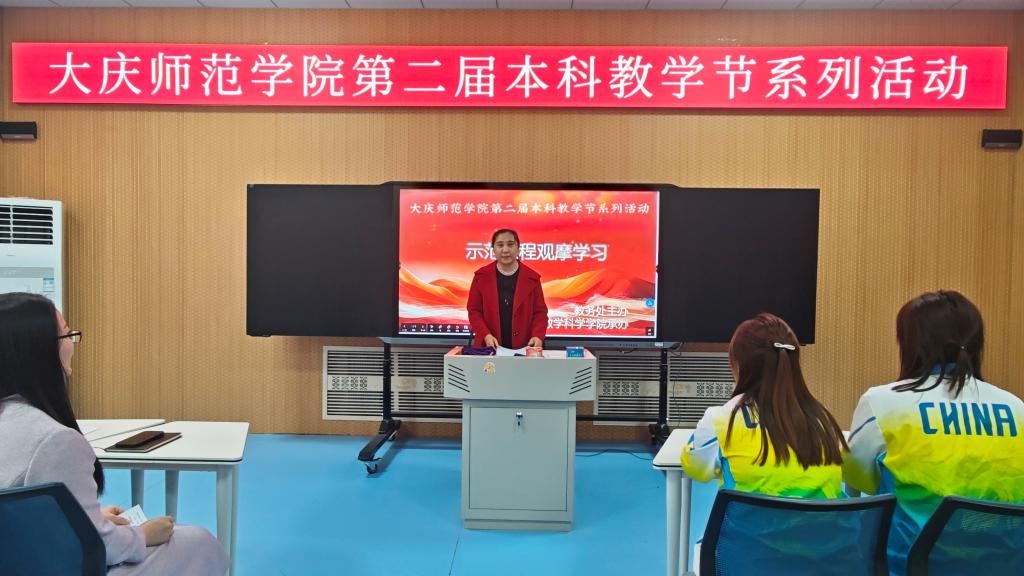 活动现场,副处长姜秀丽发表致辞,对数学科学学院精心承办本次课堂教学示范课观摩活动表示感谢,对两位授课教师的精心准备与积极投入给予充分肯定,同时点赞全体参与教师深耕教学、潜心教研的饱满热情。她强调,示范课程观摩是推动教学经验互鉴、教学方法创新的重要载体,希望老师们以此次活动为契机,汲取优秀教学经验,创新课堂教学模式,不断提升自身教学素养,共同助力学校本科教学质量稳步提升。