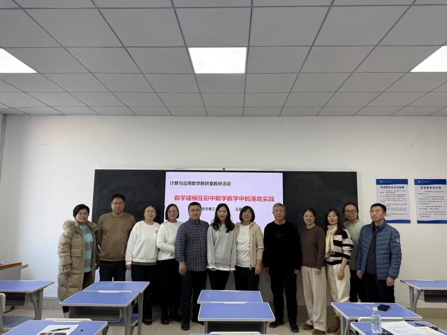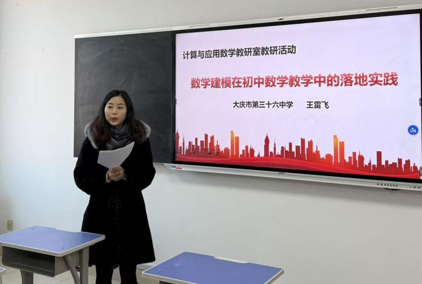 为深化核心素养导向下的数学教学改革,搭建初高中数学教学与高校专业研究的沟通桥梁,12月17日,大庆市第三十六中学数学教师王雷飞来到数学科学学院,开展以“数学建模在初中数学教学中的落地实践”为主题的教研活动,与计算与应用数学教研室的全体教师共话数学建模教学的实践路径与创新方向。
