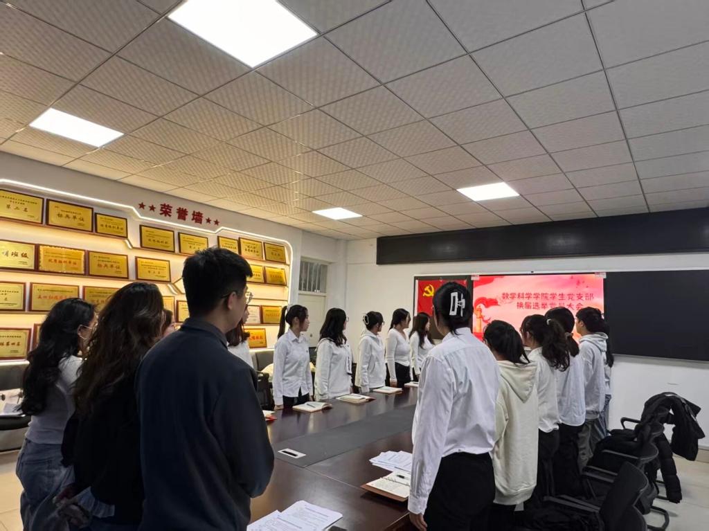此次换届选举工作的顺利完成,为数学科学学院学生党支部注入新的活力,标志着支部建设工作开启新的篇章。新一届支部委员会将以此为契机,凝心聚力,担当实干,团结带领全体学生党员为学院和学校的高质量发展贡献青春力量。(撰稿:张紫涵 审核:夏丽娜 编辑:闫炎)
