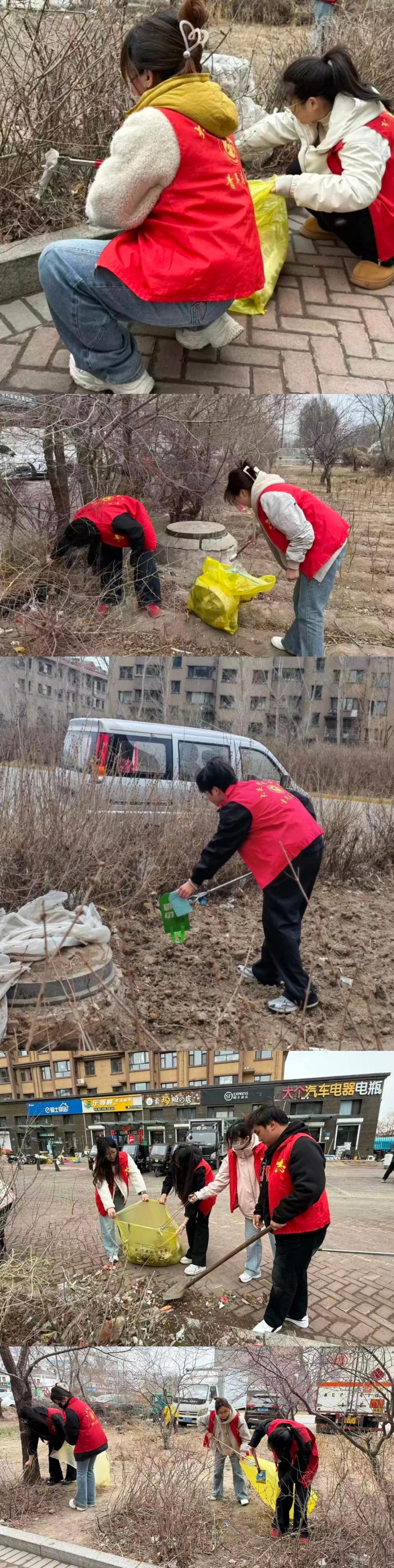 活动期间,工作人员在指定地点为志愿者们分发黄色垃圾袋、垃圾夹、手套等清洁工具,并详细讲解活动流程、重点清理区域及安全防护事项。随后,学生党员与青年志愿者们身穿红色志愿马甲,分组深入社区户外角落,针对绿化带、灌木丛等区域进行集中清理。面对枯枝间隐藏的塑料包装袋、纸屑烟头、废弃杂物等各类垃圾,志愿者们或蹲身细致捡拾,或用工具清理缠绕杂物,全程认真负责、一丝不苟。同学们纷纷表示,在实践过程中,深刻体会到志愿服务的责任与价值,今后将继续发扬吃苦耐劳、甘于奉献的优良作风,主动投身各类志愿服务活动。